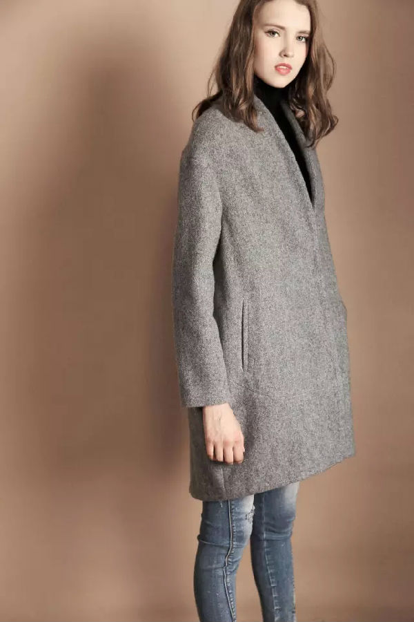 灰色A型的呢料大衣与浅色牛仔裤的搭配,时尚味道十足;上身的味道干练中带着些许的俏皮!