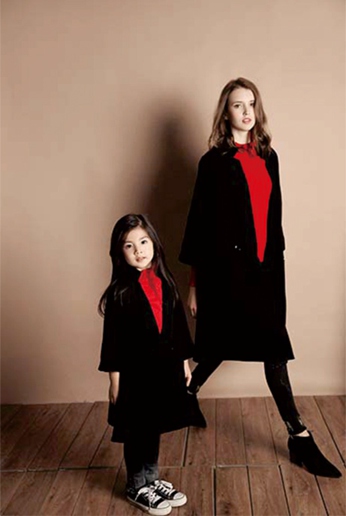 黑色是冬季避不开的经典色,天使舞台这款黑色廓形呢子大衣,A字廓形的款式尽显潮流范儿。内搭一件红色打底衫,红色和黑色的撞色搭配给人强烈的视觉冲击,,妈妈和女儿穿一样的衣服感受吸睛,同时也有魅力感觉。