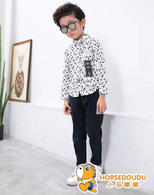 继续放送衬衫系列,波点元素运用的非常有特点,让人一眼看上去尽是潮流,而不是庸俗,话说运用波点元素的衣服,特别是成人装,并不容易穿出特点,相反的还有可能获得减分的效果,这件衣服的确值得潮童入手。