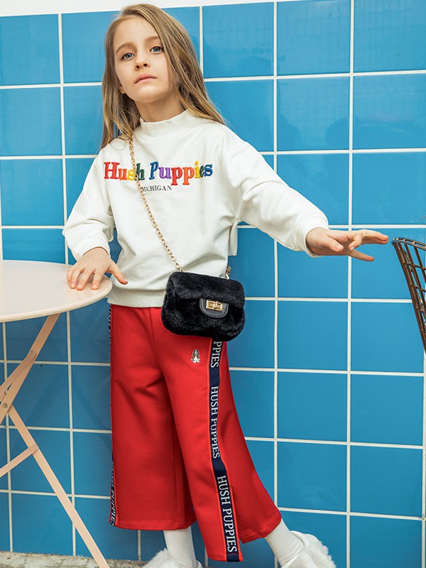 活力的造型自然少不了一款亮色系的单品,家长可以给女宝宝选择一条休闲风红色阔腿裤,颜色鲜艳有活力,穿起来休闲时尚。卫衣在秋冬时节运用的频率高,实穿好驾驭,款式多样。家长上身可以为女宝宝选择一件白色的套头卫衣,颜色清爽干净,穿起来清爽休闲。再搭配一双白色的休闲鞋,打造出了活力感的女童造型!