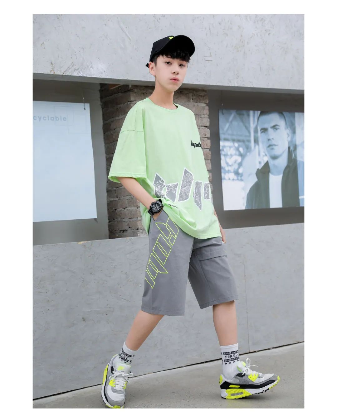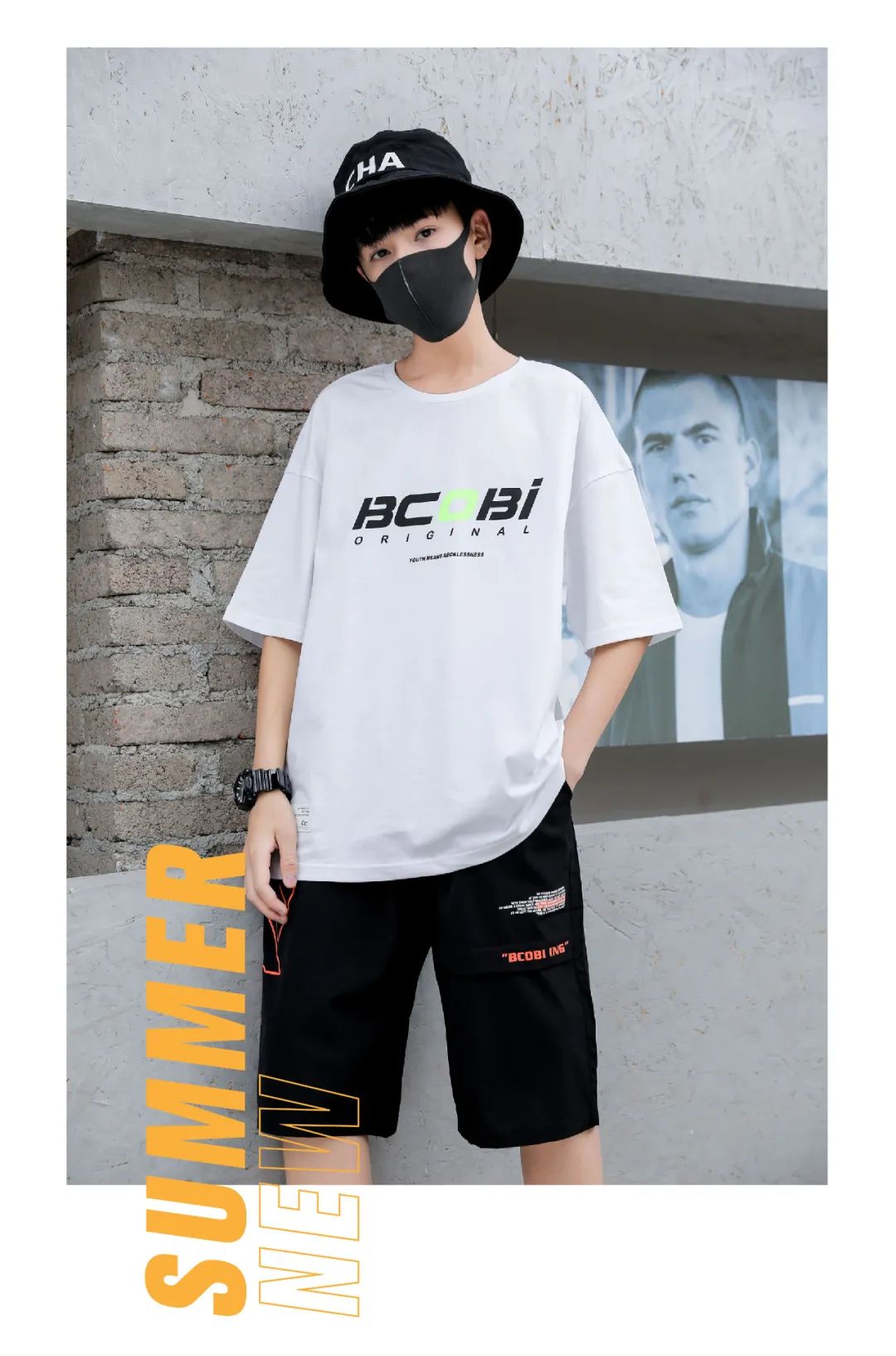 百搭T恤,文艺复兴的传统美学与现代YOUTH CULTURE文化的结合,让整体感更富有活力。休闲中裤,不对称裤型彰显个性与创新理念。