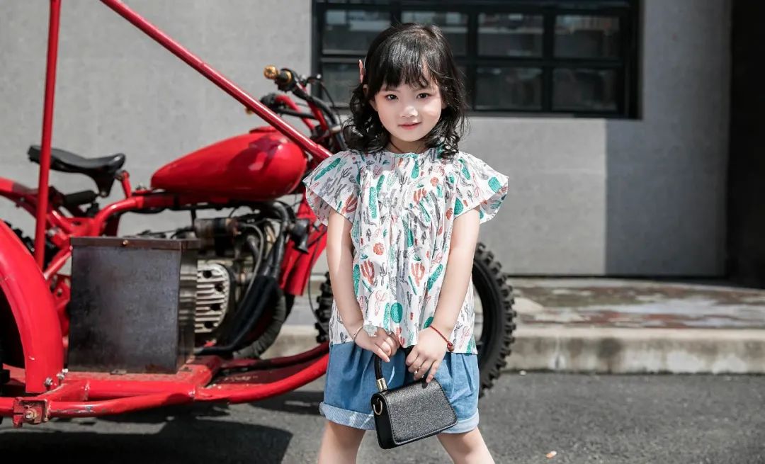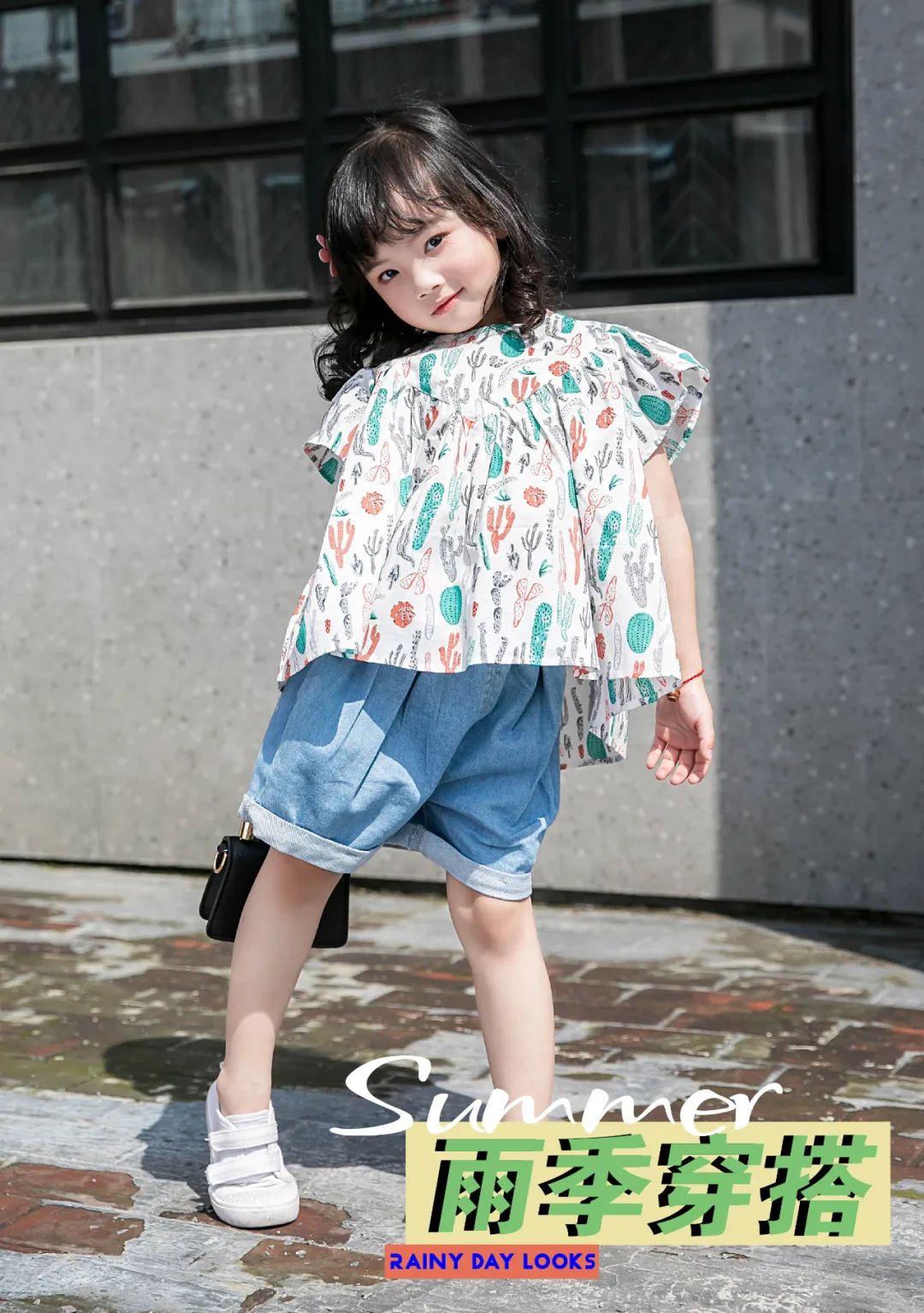 治愈系印花小衫,甜美又舒适;牛仔短裤,腰头木耳边设计,百搭时尚。