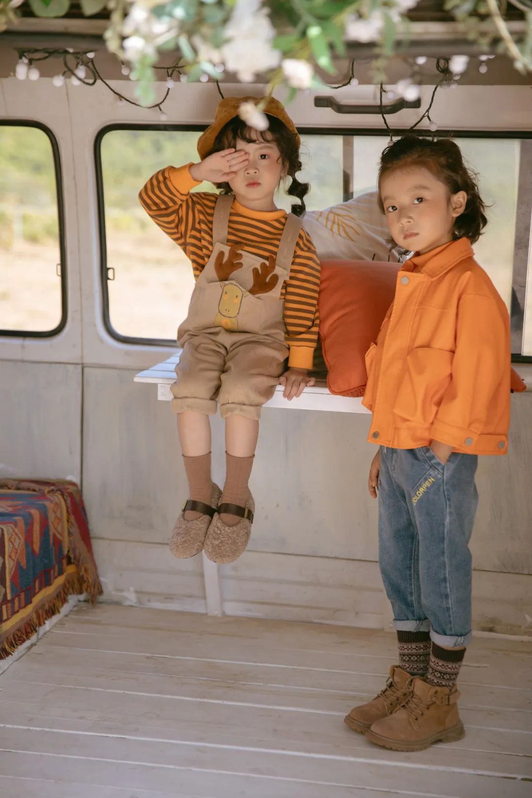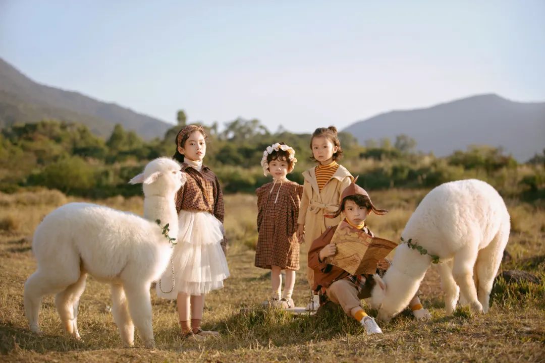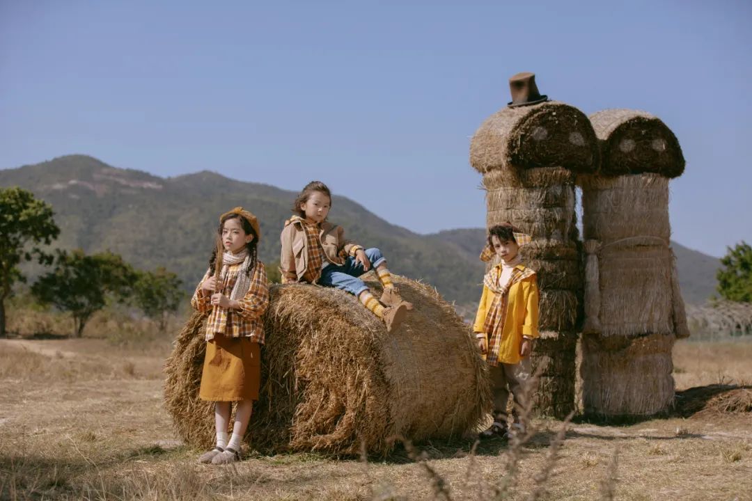 孩子们在铺满金色落叶的林荫大道上嬉戏,