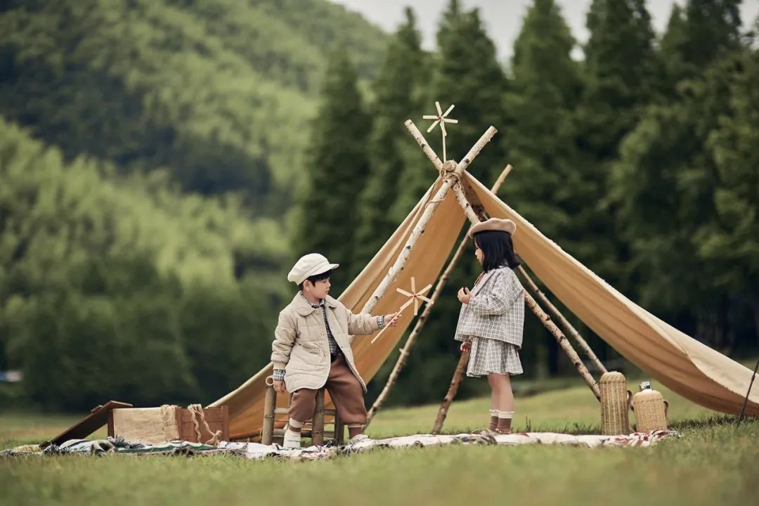 几个嬉戏的身影,还有丛林中那一抹绿,
