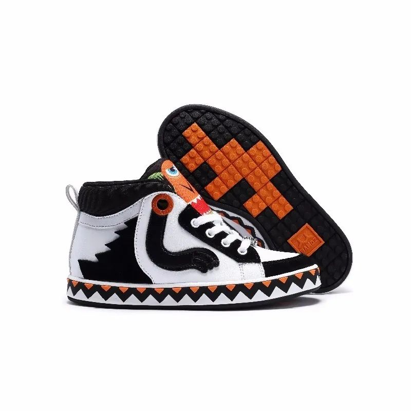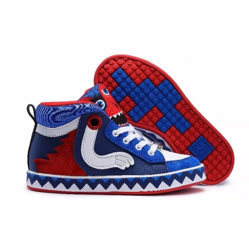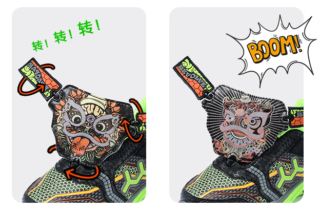 男生款鞋面灵感来源于南狮北狮,女生款融入中国传统脸谱艺术。