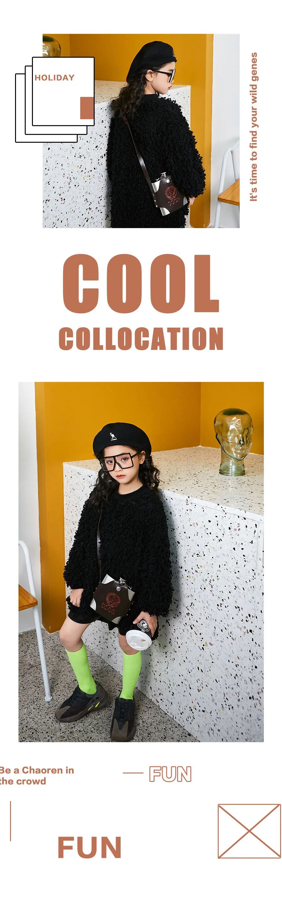 有人说厚重和轻盈是矛盾的存在,但时尚告诉你,这二者是可以兼得的。极夜黑的羊毛卷套衫,毛茸茸的有种想抱在怀里使劲揉的冲动,恰好的长度完美搭配同色系五分皮裤,甜酷的轻朋克风即使在游乐园也玩得转,CHIC感直逼街拍博主。