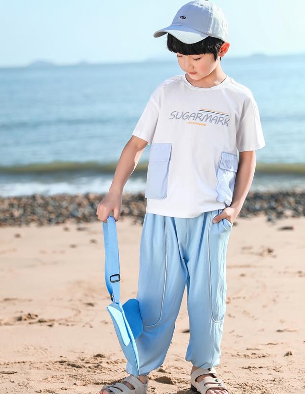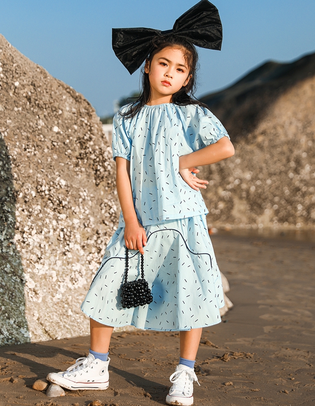 夏天的足迹非常明显,不用细细查找,一眼就能看到。一张照片,把此刻的光景定格下来,待以后的自己回味。这款浅蓝色衣裙套装,像是无形中与周围的蓝色海洋打了一声招呼,仿佛在说,嗨!我能跟你们做朋友吗?