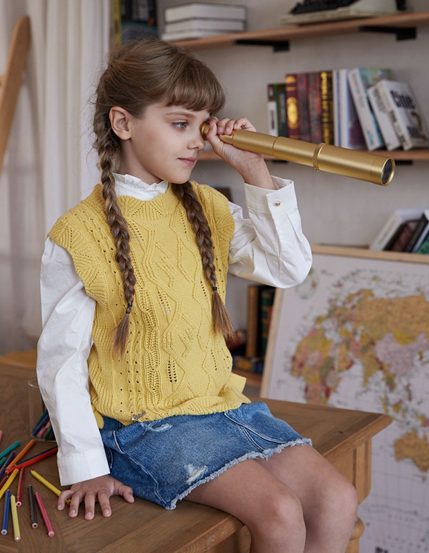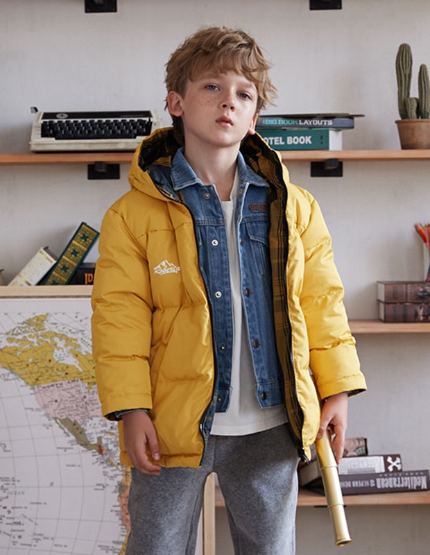 鹅黄色的加厚羽绒外套彰显暖洋洋的气质,是可爱与活泼的宝宝们的喜爱,这样一件亮色外套在手,搭配浅色内搭和牛仔蓝色的下裤,在秋天这个有些丝丝哀愁的季节里,成为爸爸妈妈的Happy Virus吧!