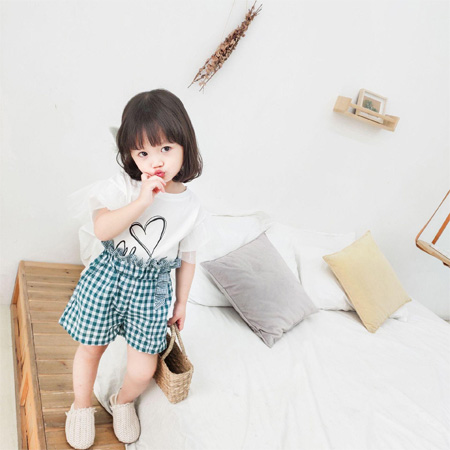女孩子的夏日穿搭其实很简单,只要选对单品就能***打造甜美小仙女。这件简约而不简单的白色上衣,经典的圆形领口,舒适简洁,袖子拼接薄纱装饰,增添几分俏皮感,搭配清新的格纹短裤,腰部的褶边设计,甜美可爱,令人心动。