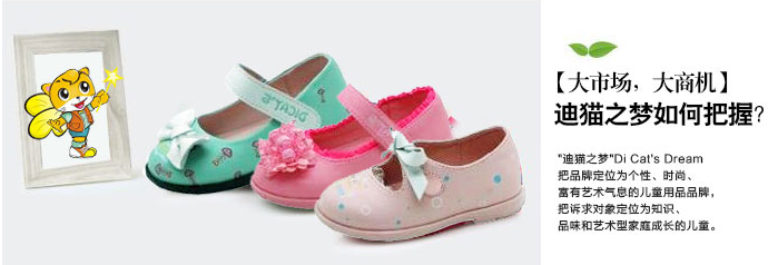 儿童用品市场商机无限,却也鱼目混杂,低价、劣质等产品充斥着整个市场。因此,“回归产品”是儿童鞋服品牌发展之本源。迪猫之梦童鞋品牌拥有一支极具创新资深的鞋样设计师团队,开发设计婴儿鞋和童鞋,多方尝试各个不同风格的健康儿童鞋,打造舒适流行的新鲜款式,开拓国内品牌童鞋的创业之路。迪猫之梦童鞋注重品牌口碑,对产品品质严格要求,多年来迪猫之梦的产品设计使用业界一流的高标准,直至产品成形销售之后的服务网络等战略推广,进一步提高品牌运作规模,努力打造出一款适合婴童的高规格的优秀品牌。