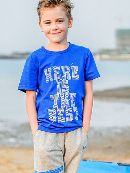 对于小男生来讲,蓝色的穿搭使他们会比较喜欢的色彩。在这里童衣汇运用蓝色的T恤搭配上灰色的裤装,在裤子上运用蓝色的印花装饰让穿搭更加整体化。这样的穿搭孩子们喜欢,家长们也更愿意给孩子买哦。