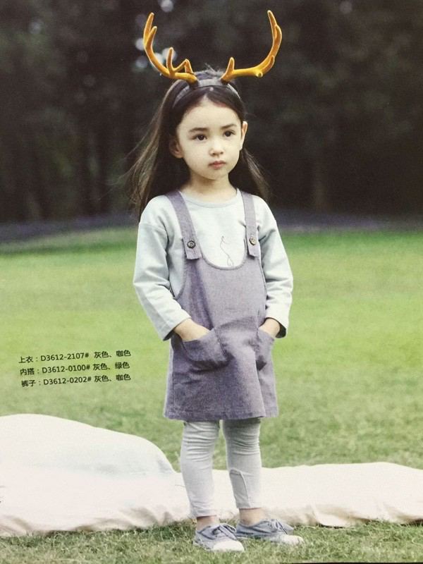 小女孩的装扮也是以灰色为主,灰色的长袖T恤衫,配上深灰色背带裙,下身打底裤的配搭,这就是秋季的装扮,简约大方,也不需要什么亮眼的装扮,简简单单,灰色系的搭配让秋季经典又时尚。妈妈们也来童衣汇给孩子们挑选吧。